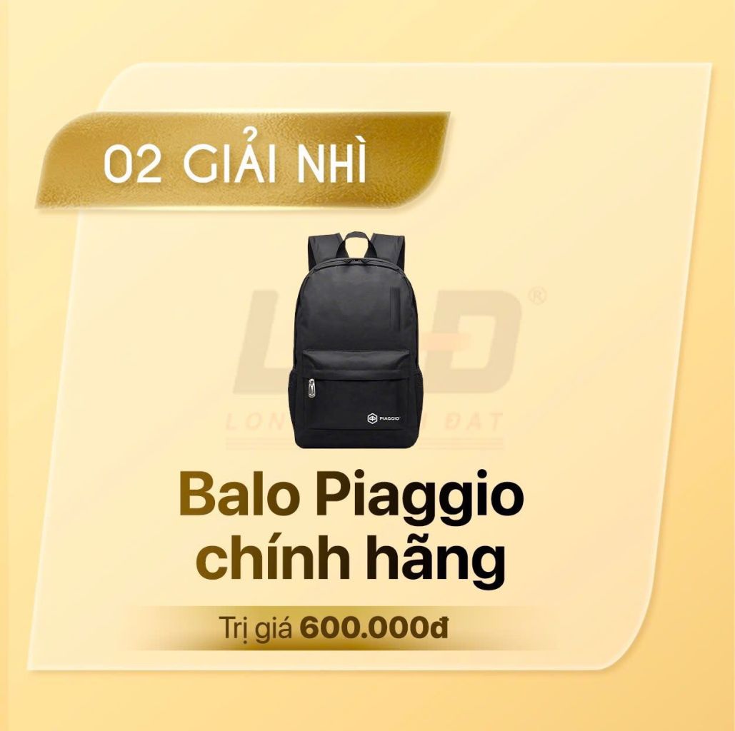 Giải nhì là Balo Piaggio chính hãng trị giá 600.000đ