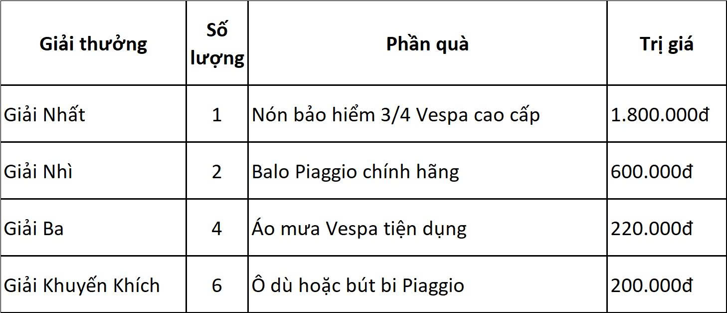 Giải nhất là một nón Vespa 3/4 cao cấp trị giá 1.800.000đ